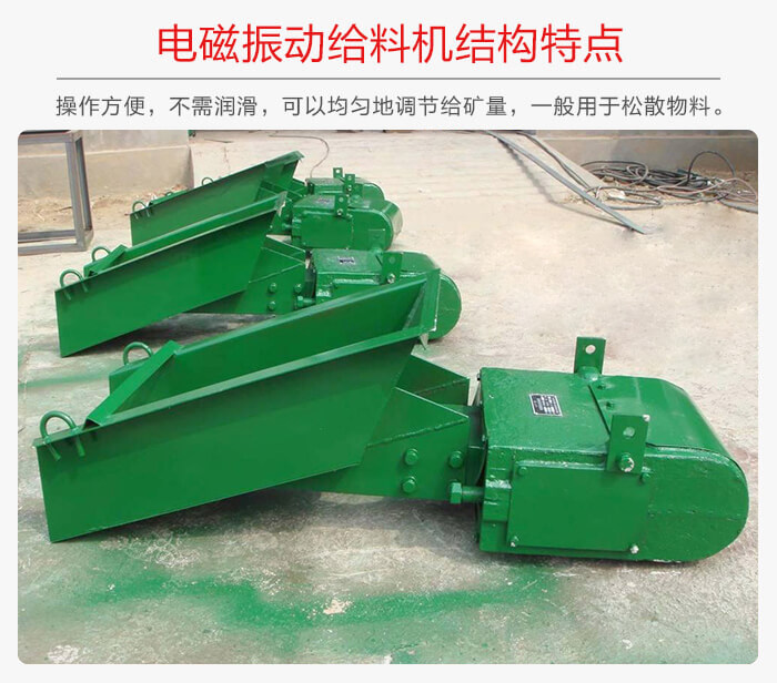 電磁振動給料機(jī)結(jié)構(gòu)簡單,操作方便,不需潤滑,耗電量小;可以均勻地調(diào)節(jié)給礦量;因此已得到廣泛應(yīng)用。一般用于松散物料。