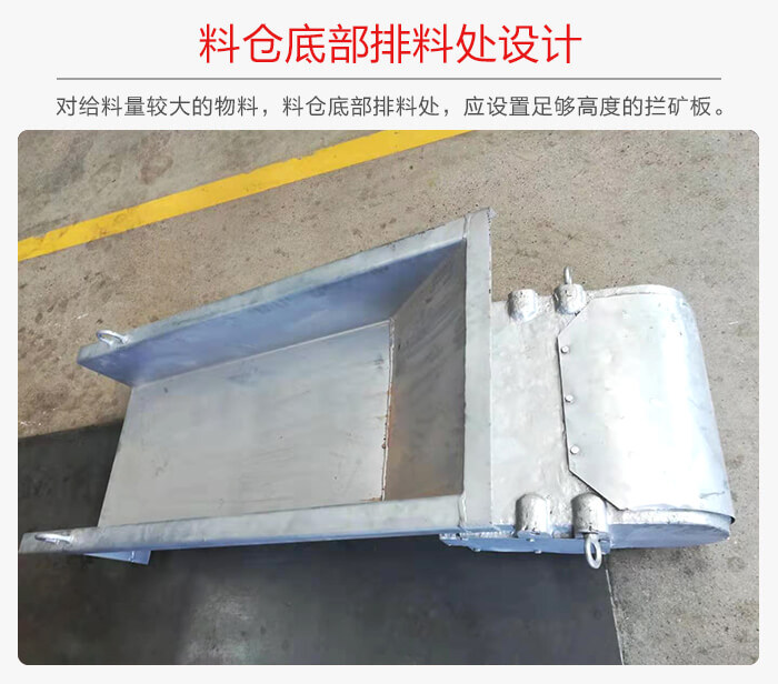 對給料量較大的物料,料倉底部排料處,應(yīng)設(shè)置足夠高度的攔礦板; 為不影響給料機(jī)的性能,攔礦板不得固定在槽體上。