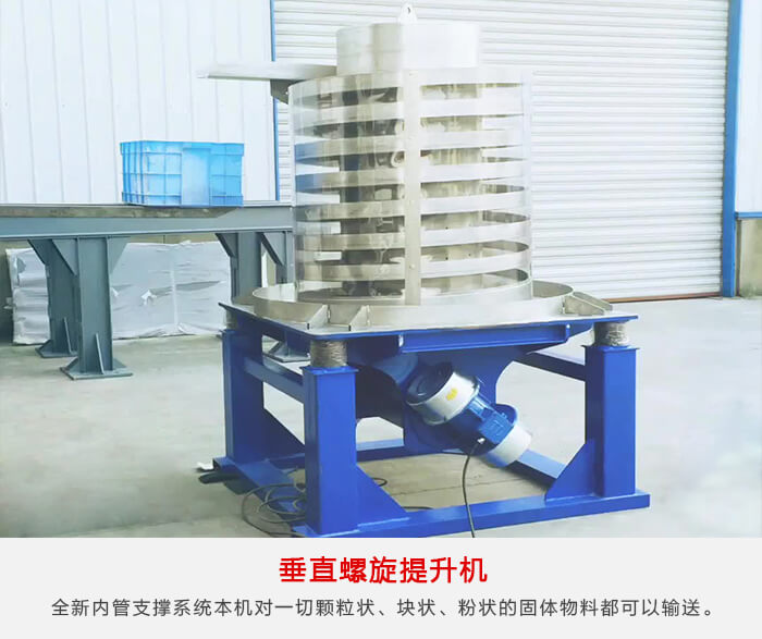 垂直振動(dòng)螺旋提升機(jī)又叫振動(dòng)螺旋提升機(jī)、垂直螺旋提升機(jī)、振動(dòng)垂直提升機(jī)等。振動(dòng)垂直螺旋提升機(jī)是一種新型的垂直振動(dòng)輸送設(shè)備,該設(shè)備具有蜂窩式底座,全新內(nèi)管支撐系統(tǒng)本機(jī)對(duì)一切顆粒狀、塊狀、粉狀的固體物料都可以輸送。