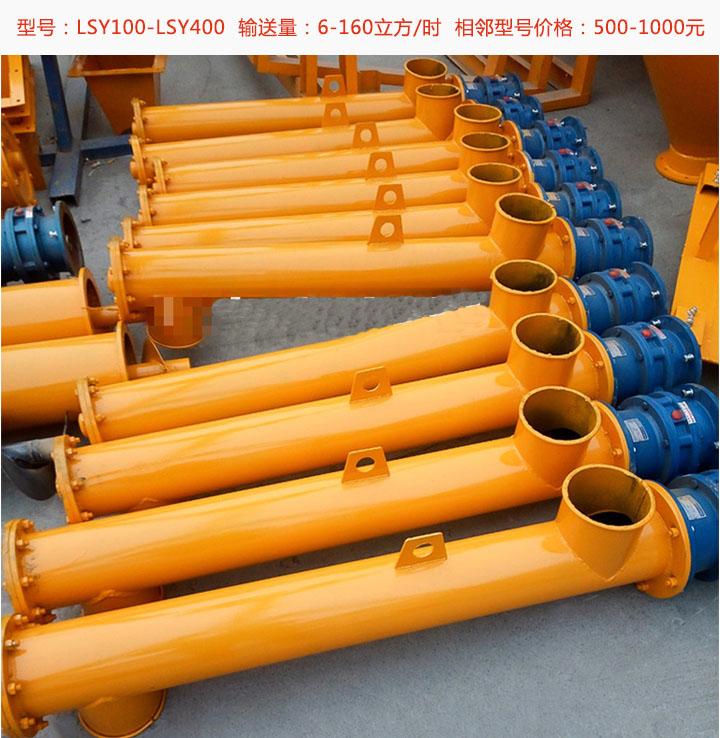 水泥螺旋輸送機(jī)常用型號(hào)有LSY100,LSY120,LSY140,LSY160,LSY200,LSY250,LSY300,LSY350,LSY400等9種對(duì)應(yīng)的,輸送量為6-160立方/小時(shí),可根據(jù)需要的輸送量選擇對(duì)應(yīng)的型號(hào),型號(hào)不同對(duì)應(yīng)的價(jià)格也不同。
