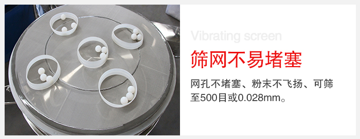 3、網(wǎng)孔不堵塞、粉末不飛揚(yáng)、可篩至500目或0.028mm。