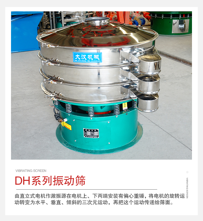 簡(jiǎn)介:DH系列振動(dòng)篩是一種高精度細(xì)粉篩分機(jī)械其振動(dòng)運(yùn)轉(zhuǎn)原理很多企業(yè)也稱之為“三次元振動(dòng)篩”。